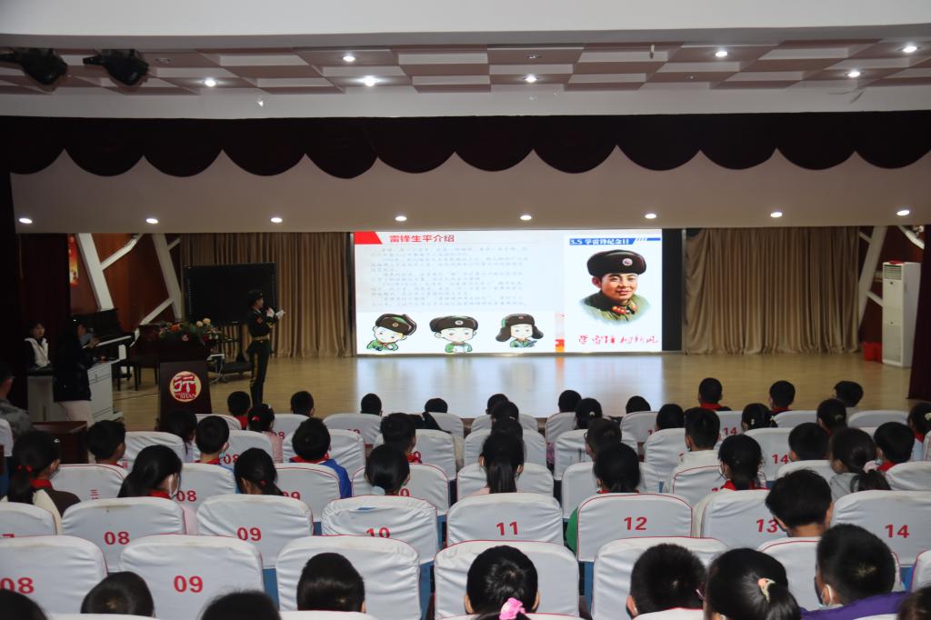 宣講開始,在國旗護衛隊隊員孔依凡的帶領下,同學們一起回顧了雷鋒同志的生平。通過講解PPT和播放視頻的形式,孔依凡向孩子們生動形象地講述了“小小的雷鋒圖書館”“小小拖拉機手”等故事,將雷鋒精神的種子播撒在孩子們心間。
