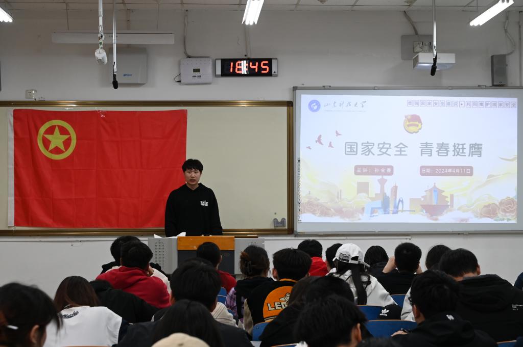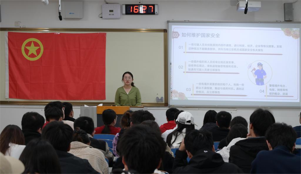 首先,孫金香以“國家安全 青春挺膺”為題講授團課。她通過知識講解和案例分析的形式,以習近平總書記關于總體國家安全觀的重要論述為切入點,詳細介紹了國家安全日的由來、危害國家安全的行為、如何維護國家安全以及誰來保衛國家安全等內容。她指出,維護國家安全是每位公民的責任和義務,作為團支部書記更應該以身作則,增強憂患意識、樹立底線思維,為同學們樹立榜樣。她強調,各團支部要高度重視,精心籌備,認真開展國家安全主題團日活動,引導同學們將國家安全意識轉化為自覺行動,強化守護國家安全、共筑青春防線的時代責任。