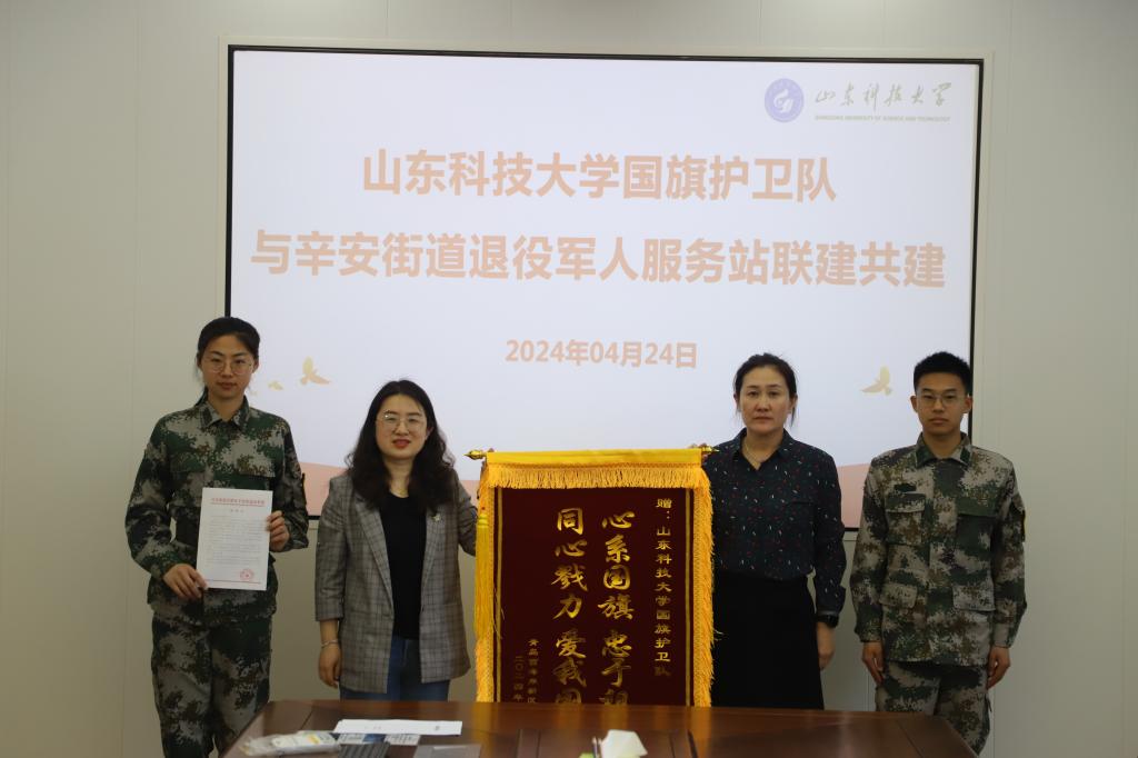 4月24日上午,國旗護(hù)衛(wèi)隊(duì)與辛安街道退役軍人服務(wù)站開展聯(lián)建共建簽約儀式。辛安街道宣傳統(tǒng)戰(zhàn)委員、武裝部長(zhǎng)張強(qiáng),辛安街道黨工委委員、辦事處副主任李傳文一行6人來訪,校團(tuán)委副書記李雷、9999js金沙老品牌黨委副書記兼副院長(zhǎng)吳昊會(huì)見客人,9999js金沙老品牌團(tuán)委書記孫金香、輔導(dǎo)員韓冰及國旗護(hù)衛(wèi)隊(duì)代表陪同參加。